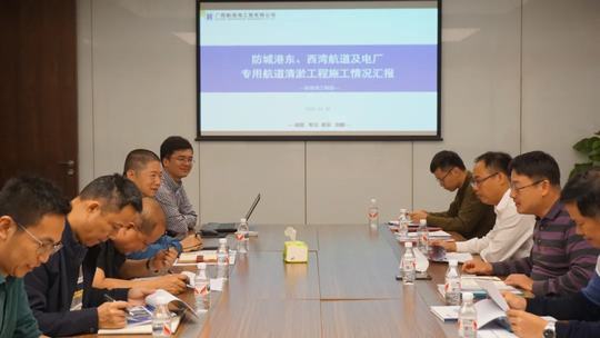 座談會上,雙方圍繞西部陸海新通道門戶港建設(shè),特別是自治區(qū)重點關(guān)注項目之一的防城港東西灣航道疏浚項目施工建設(shè)進行了深入交流。在認真聽取了項目工程情況介紹后,北港股份工程管理部總經(jīng)理賀立、副總經(jīng)理竇廣元結(jié)合項目實際,就如何推進項目管理、確保工程進度提出了中肯的意見及可取的建議。公司總經(jīng)理肖建國對北港股份工程管理部給予項目前期建設(shè)的大力支持表示感謝,同時要求項目部提高認識,加強工程管理,保質(zhì)保量按期完成項目施工。